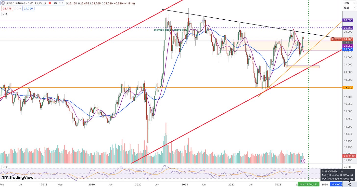 Both metals are set to take off or breakout or even breakdown. However seasonally August to Sept is breakout for the metals into Oct/Nov
